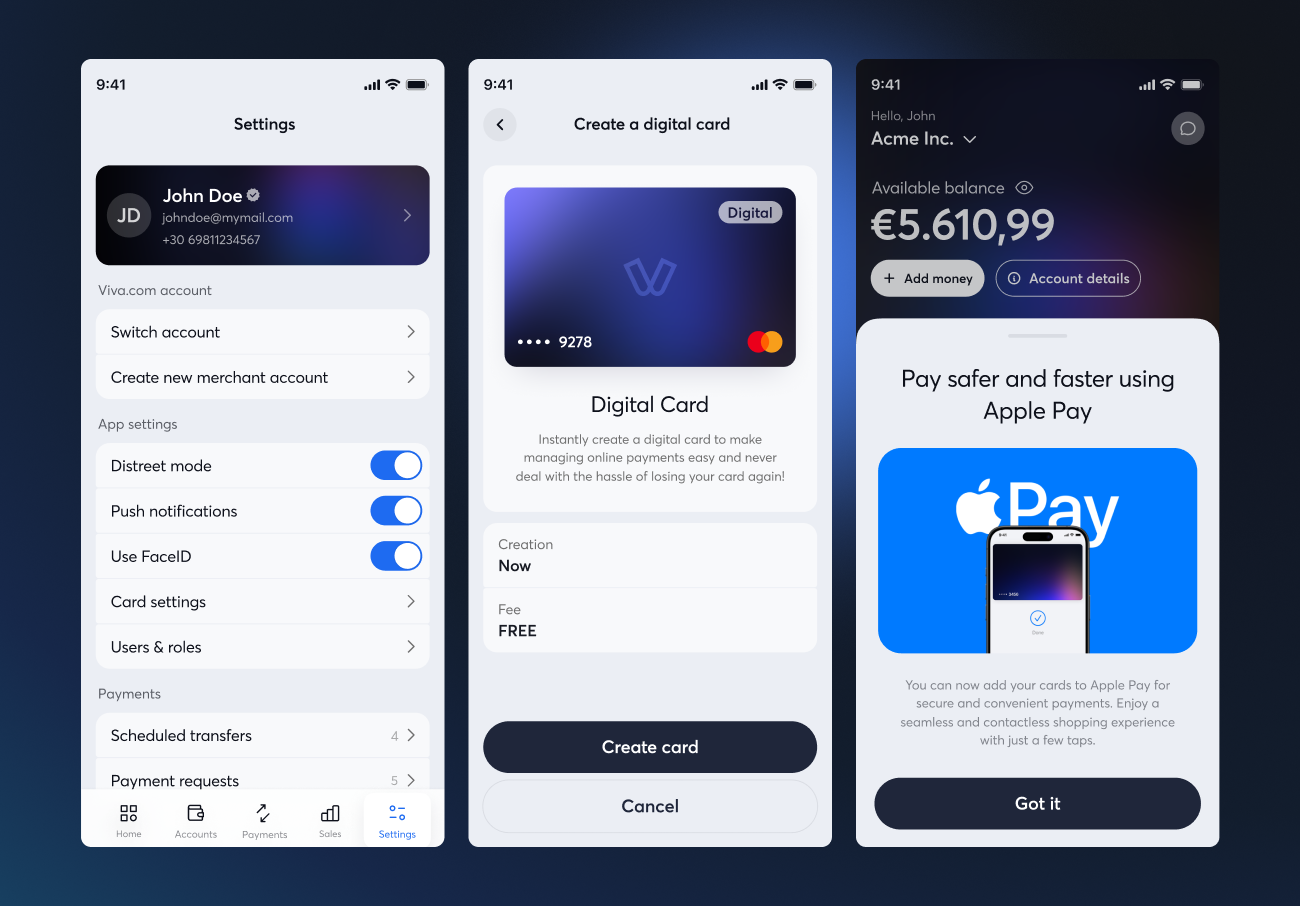 My role in this project was to redesign the Viva.com banking app to improve user engagement and usability. We aimed for a fresh and up-to-date look, based on Viva’s new design system, to make payments, transfers, card management, and other features easier for our users.